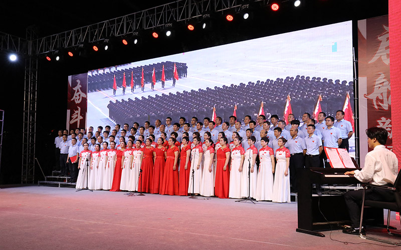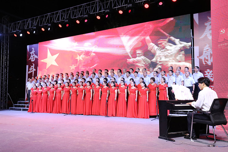 開場舞《紅色激情》拉開了演出序幕。公司各單位職工的大合唱,表達(dá)了對黨的無限熱愛和真誠祝福。《祖國不會忘記》《我宣誓》《我和我的祖國》《跟著共產(chǎn)黨走》《歌唱祖國》《東方紅》等一曲曲經(jīng)典紅歌,在背景畫面的襯托下,將觀眾的思緒引入了中國共產(chǎn)黨帶領(lǐng)人民艱難創(chuàng)業(yè)的光輝歷史中。