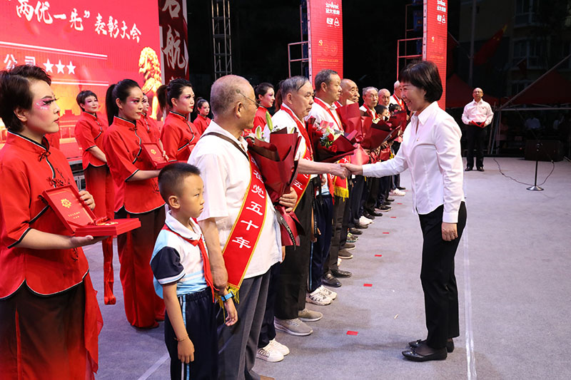 天水市人大副主任、市總工會(huì)主席王曉琴向“光榮在黨50年”老黨員代表頒發(fā)了紀(jì)念章。