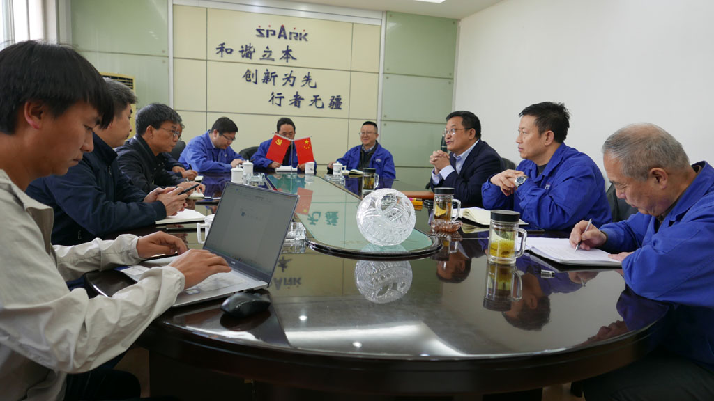 隨后,星火機(jī)床集團(tuán)公司董事長(zhǎng)蔣保權(quán)與曾晨輝一行座談。蔣保權(quán)詳細(xì)介紹了企業(yè)歷史沿革、產(chǎn)品研發(fā)、技術(shù)創(chuàng)新、生產(chǎn)經(jīng)營(yíng)等情況。希望以此為契機(jī),加強(qiáng)雙方溝通交流,尋求合作機(jī)遇,共謀企業(yè)發(fā)展。