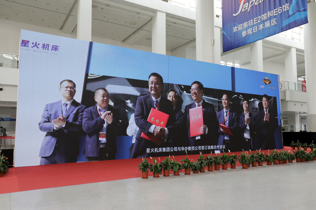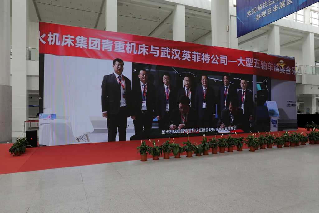 4月14日,中國機床工具行業(yè)協(xié)會主會場大屏及視頻號滾動播放星火機床集團公司展位商務(wù)洽談及簽約盛況。