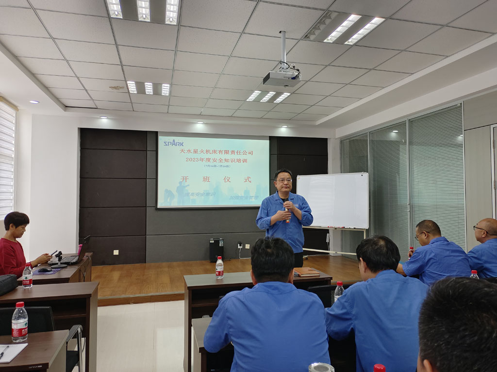 為進(jìn)一步夯實(shí)公司員工安全生產(chǎn)理論基礎(chǔ),強(qiáng)化員工安全意識,預(yù)防安全事故,確保安全生產(chǎn),全面提升安全管理水平。星火機(jī)床公司2023年度安全知識培訓(xùn)班于7月14日在工業(yè)園銷售會議室開班,公司中層以上干部、相關(guān)管理人員及安全員等90多人參加。