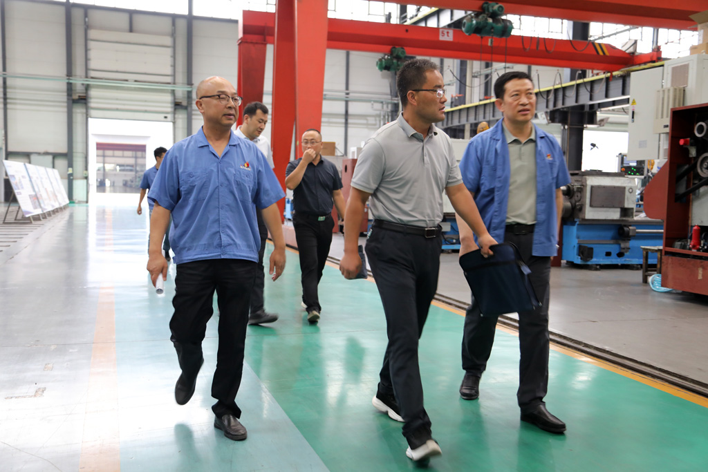 在工業(yè)園裝配車間現(xiàn)場,星火機床集團公司總經(jīng)理劉勝陪同裴育棟一行參觀了生產(chǎn)現(xiàn)場并介紹了企業(yè)的生產(chǎn)經(jīng)營,以及并購青重機床的情況。參觀結束后,裴育棟一行與公司領導劉勝、蔣俊等在銷售部會議室座談。