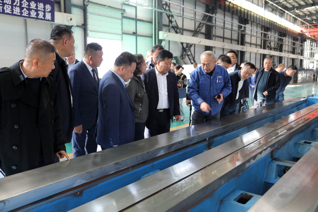 郝效冬一行深入公司裝配生產(chǎn)現(xiàn)場,詳細(xì)了解了公司歷史沿革、基本情況、產(chǎn)品研發(fā)、項(xiàng)目建設(shè)等情況,并參觀了公司自主研發(fā)生產(chǎn)的萬能軋輥磨床、五軸聯(lián)動機(jī)床、復(fù)合材料纏繞機(jī)床、重型臥式車床等產(chǎn)品。