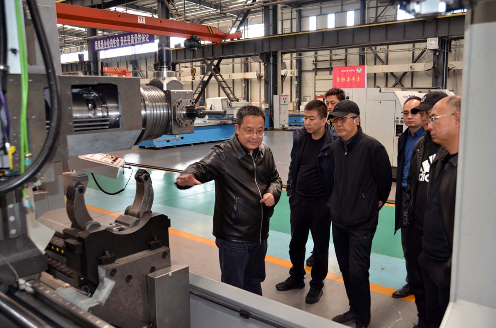 蔣保權(quán)等陪同敬君生一行參觀了公司研發(fā)生產(chǎn)的大重型機(jī)床、五軸聯(lián)動(dòng)數(shù)控精密機(jī)床、復(fù)合材料纏繞設(shè)備,以及星火青重公司生產(chǎn)的車輪車床、軋輥車床等用于國民經(jīng)濟(jì)各行業(yè)和航空、軍工、船舶、核電、鐵路等領(lǐng)域的各種新產(chǎn)品,并介紹了產(chǎn)品的工作原理、市場份額及企業(yè)發(fā)展前景。