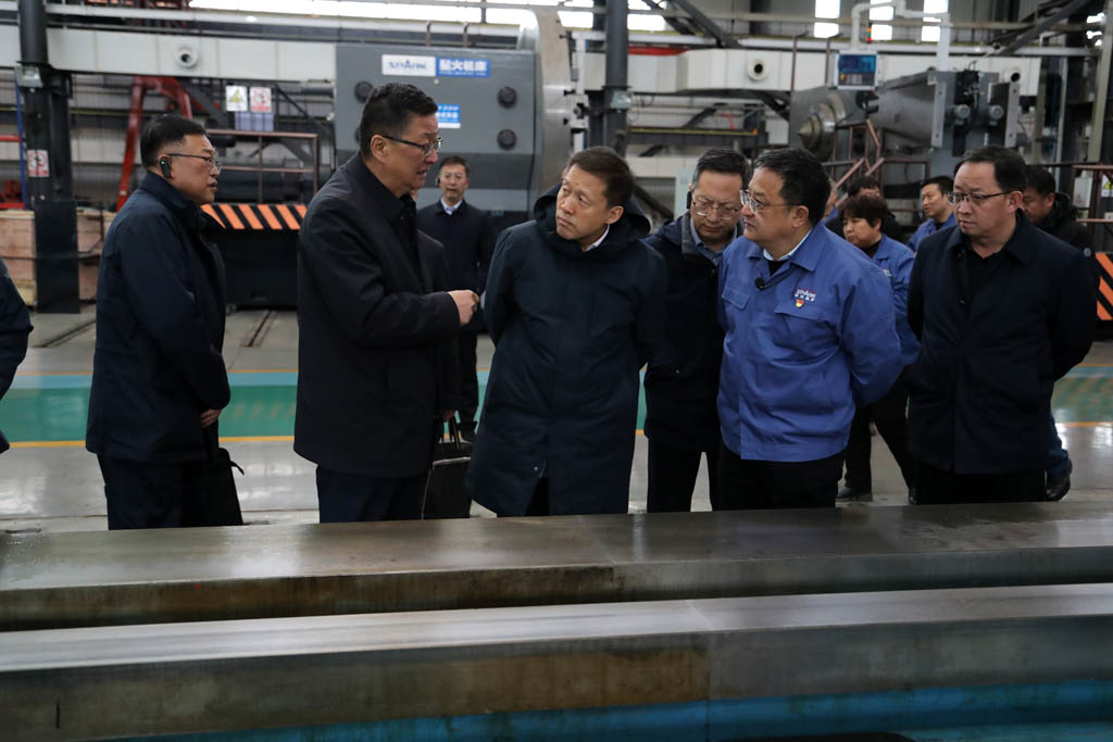 吳萬華一行聽取了黨委書記、集團(tuán)公司董事長蔣保權(quán)關(guān)于企業(yè)生產(chǎn)經(jīng)營、科技創(chuàng)新、項目建設(shè)、改革改制等工作情況的匯報,參觀了公司關(guān)鍵加工設(shè)備和研發(fā)生產(chǎn)的數(shù)控、重型、大型車床和專用機(jī)床以及青重公司的車輪車床等產(chǎn)品,了解了公司規(guī)模、加工能力、產(chǎn)品性能特點、市場份額、應(yīng)用效果,以及在替代進(jìn)口、滿足國家重點領(lǐng)域、重點項目建設(shè)需求解決“卡脖子”難題等方面的情況。