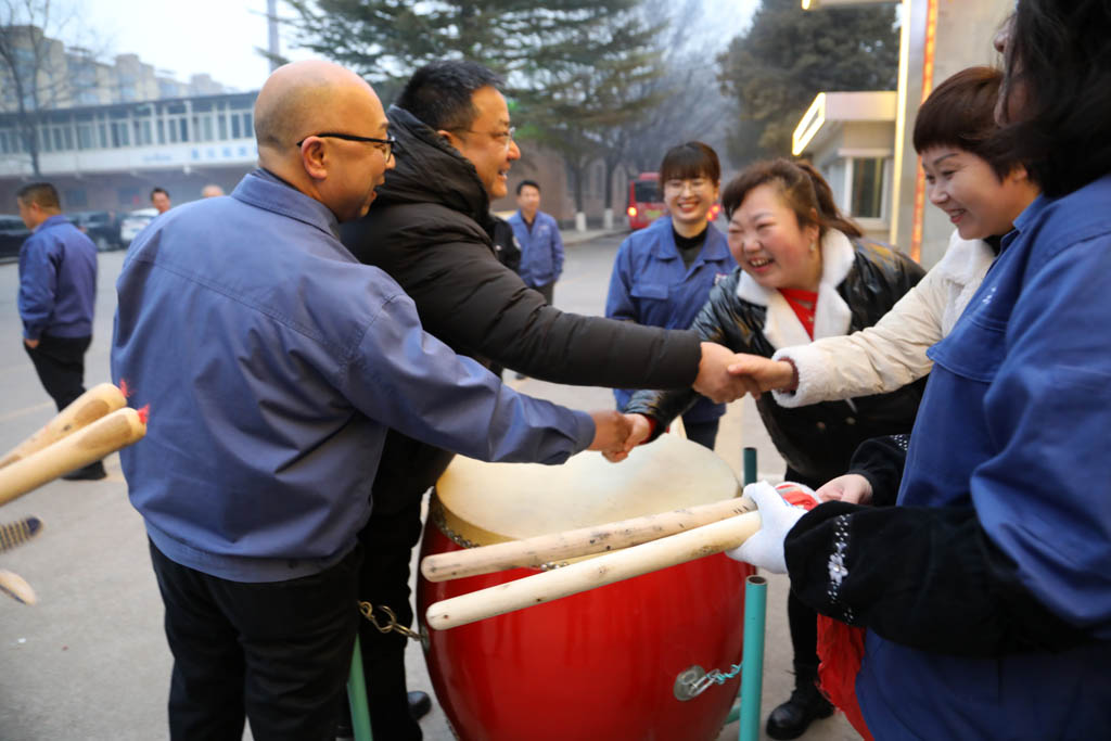 2月18日(正月初九)早上7點(diǎn)40分左右,星火機(jī)床集團(tuán)公司大門口鑼鼓喧天、鞭炮齊鳴、煙花四射。集團(tuán)公司領(lǐng)導(dǎo)班子蔣保權(quán)一行伴隨著歡快的音樂(lè)旋律和絢麗的煙花,隊(duì)列迎接每一位上班的職工,向廣大職工如期返回公司工作表示誠(chéng)摯的敬意并為他們送上新春的問(wèn)候!大家見(jiàn)面之后臉上洋溢著燦爛的笑容并相互拜年問(wèn)好。