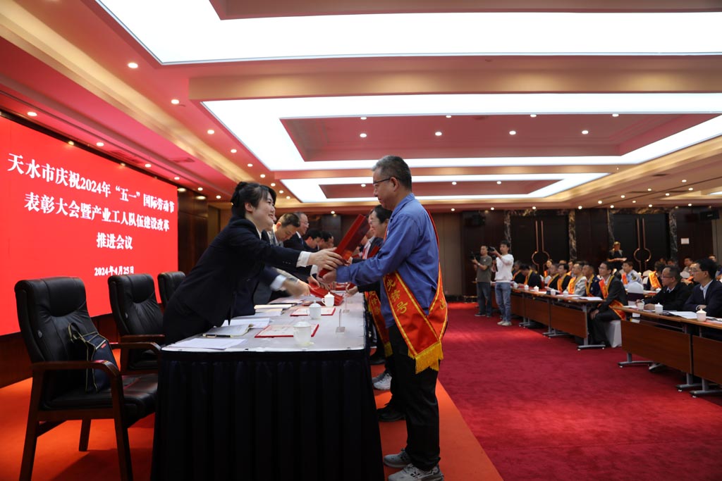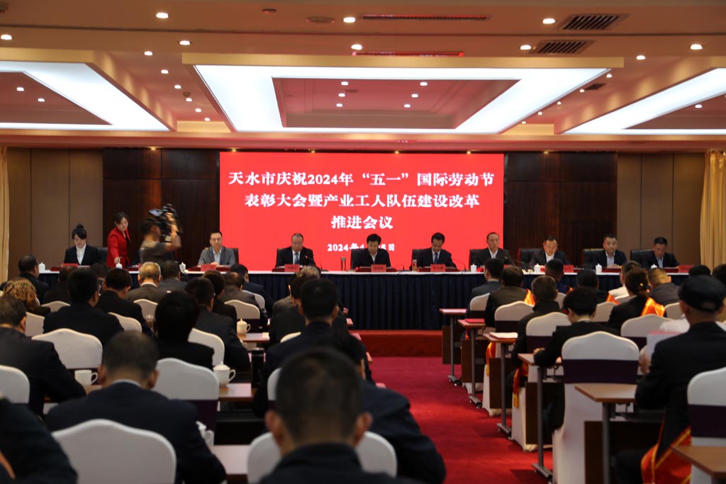 4月25日上午,天水市慶祝2024年“五一”國(guó)際勞動(dòng)節(jié)表彰大會(huì)暨產(chǎn)業(yè)工人隊(duì)伍建設(shè)改革推進(jìn)會(huì)議在天水賓館召開(kāi)。