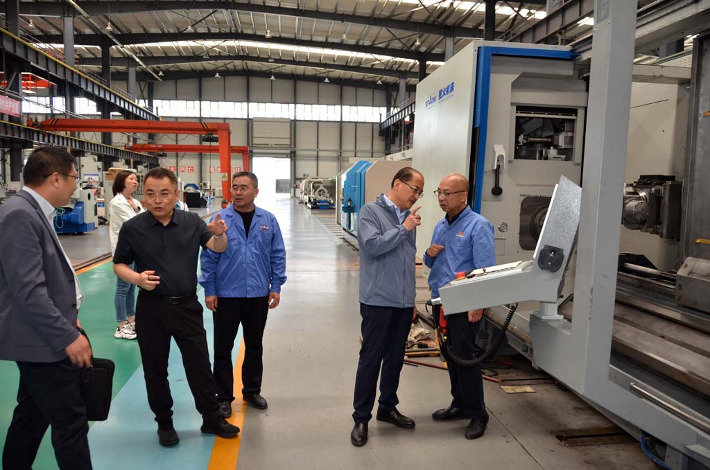 座談后,蔣俊等陪同周建平一行深入生產(chǎn)現(xiàn)場實(shí)地考察,先后參觀了公司為國家關(guān)鍵領(lǐng)域重點(diǎn)項(xiàng)目建設(shè)研發(fā)生產(chǎn)的重型、大型、精密臥式車床產(chǎn)品、目前國內(nèi)領(lǐng)先的大型五軸聯(lián)動(dòng)銑車復(fù)合加工中心,以及星火青重公司的數(shù)控車輪車機(jī)床等廣受市場歡迎的高精產(chǎn)品。
