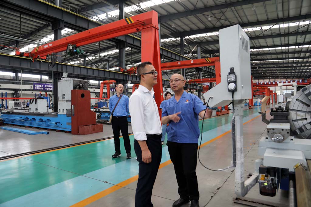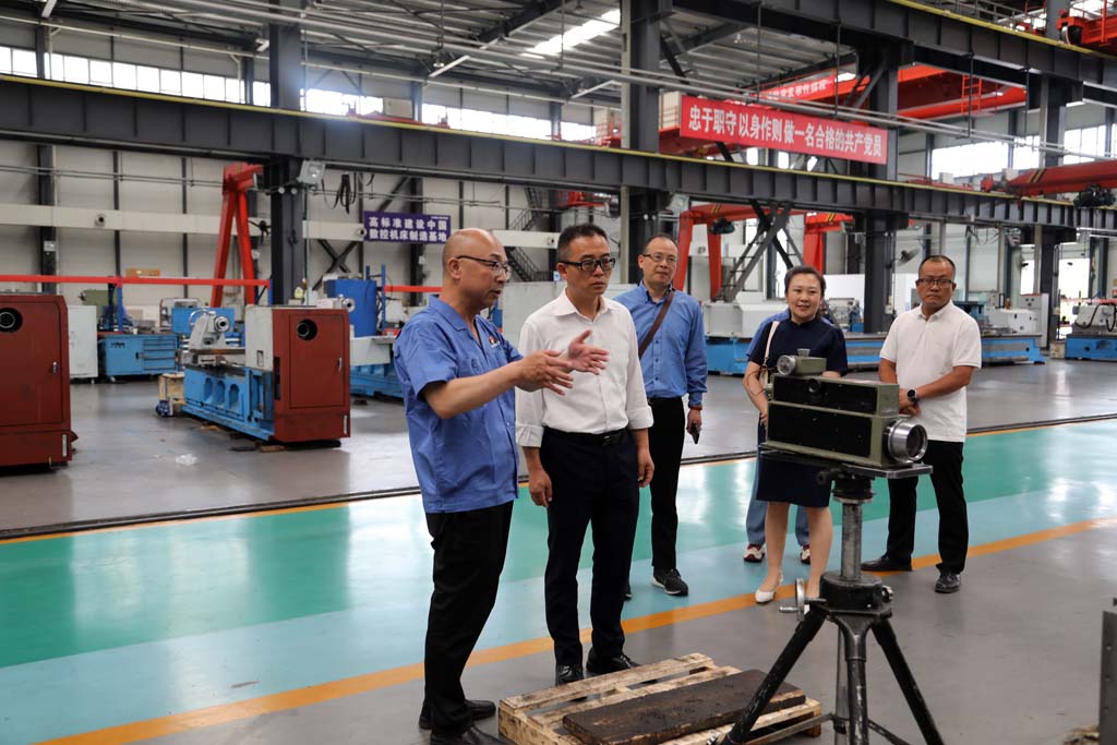 周勝一行在蔣俊陪同下深入工業(yè)園加工車間、裝配車間以及青重公司生產(chǎn)車間,參觀了裝配中的各類車床產(chǎn)品,了解了車床裝配流程。考察中,蔣俊就公司生產(chǎn)經(jīng)營、市場(chǎng)規(guī)模、智能制造、人才培訓(xùn)、科技研發(fā)等情況向周勝一行作了介紹,并結(jié)合裝配中的產(chǎn)品介紹了五軸聯(lián)動(dòng)機(jī)床、軋輥磨床以及青重車輪車機(jī)床等產(chǎn)品的性能特點(diǎn)、市場(chǎng)前景以及應(yīng)用領(lǐng)域等。蔣俊說,星火機(jī)床作為曾經(jīng)的“三線”企業(yè),經(jīng)過多年的摸爬滾打,在地區(qū)裝備制造業(yè)中占有一席之地,近年來,公司搶抓國家大力發(fā)展裝備制造業(yè)的機(jī)遇,堅(jiān)持以市場(chǎng)為導(dǎo)向進(jìn)行創(chuàng)新研發(fā),開發(fā)了一系列新產(chǎn)品,得到了市場(chǎng)的認(rèn)可。