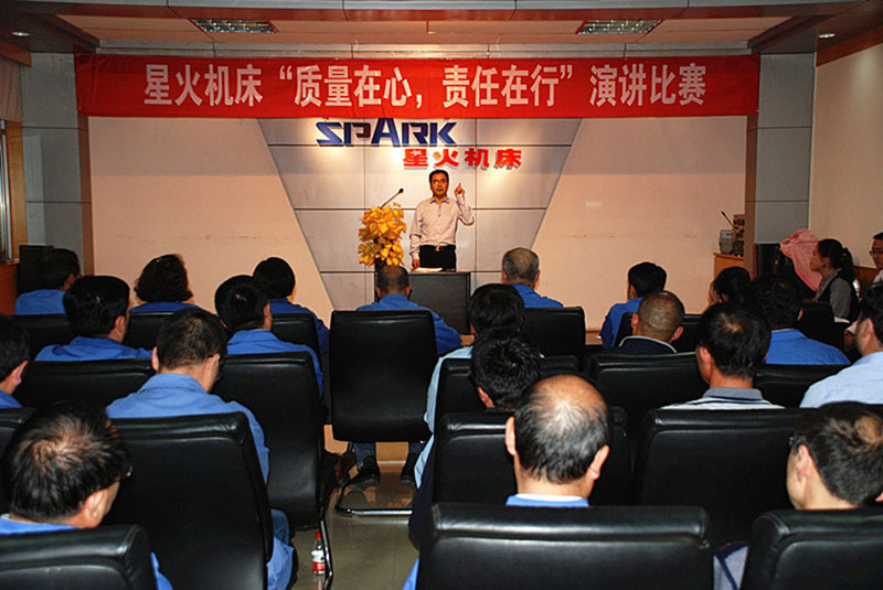為扎實(shí)有效推進(jìn)企業(yè)質(zhì)量文化建設(shè),提高企業(yè)凝聚力、向心力,提高領(lǐng)導(dǎo)干部和全體員工質(zhì)量意識(shí),在2018全國 “質(zhì)量月”活動(dòng)中,星火機(jī)床公司為認(rèn)真貫徹落實(shí)“加強(qiáng)市場監(jiān)管,建設(shè)質(zhì)量強(qiáng)國”主題,組織開展了“質(zhì)量在心、責(zé)任在行”領(lǐng)導(dǎo)干部演講比賽,經(jīng)過預(yù)賽、決賽較量,于9月14日晚上圓滿落幕。