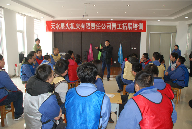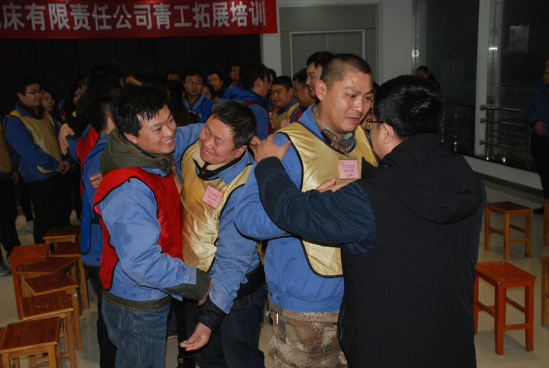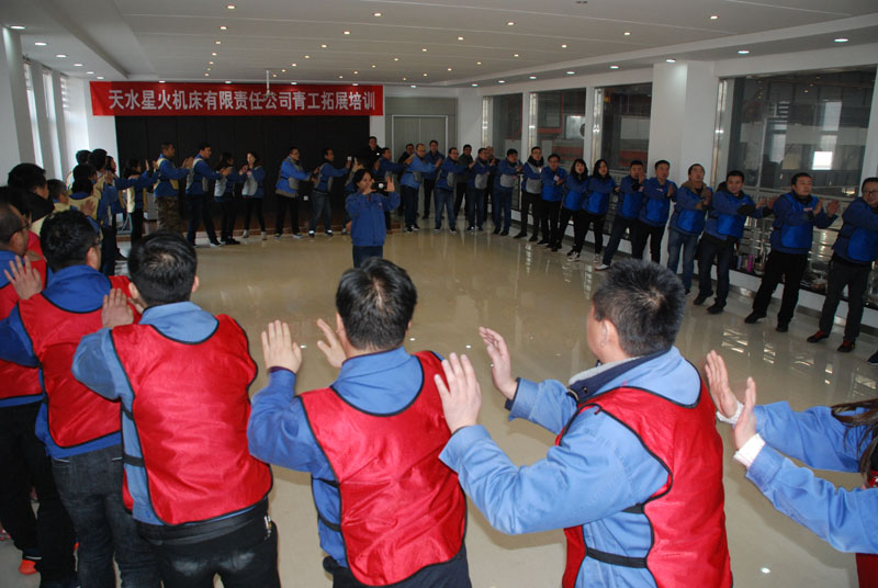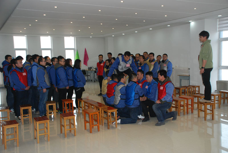 1月12日,銷售部會議室人聲鼎沸,從早上8點到晚上6點20分,一會兒響起高昂有力的口號聲,一會兒響起整齊響亮的吶喊聲。公司邀請的蘭州毅智拓展訓練營的兩位老師正在對公司50名青工進行拓展訓練。集團公司黨委書記、董事長蔣保權(quán),黨委副書記、副總經(jīng)理、工會主席蔣俊放棄休息,前來觀看訓練。公司總工程師劉強,鑄木分廠廠長張巨宏作為觀察員也早早來到現(xiàn)場,進入工作狀態(tài)。工會副主席蔡建欣集合隊員點名之后,交給培訓老師阿杜和海濤帶領(lǐng),開始了緊張有序的訓練。